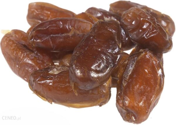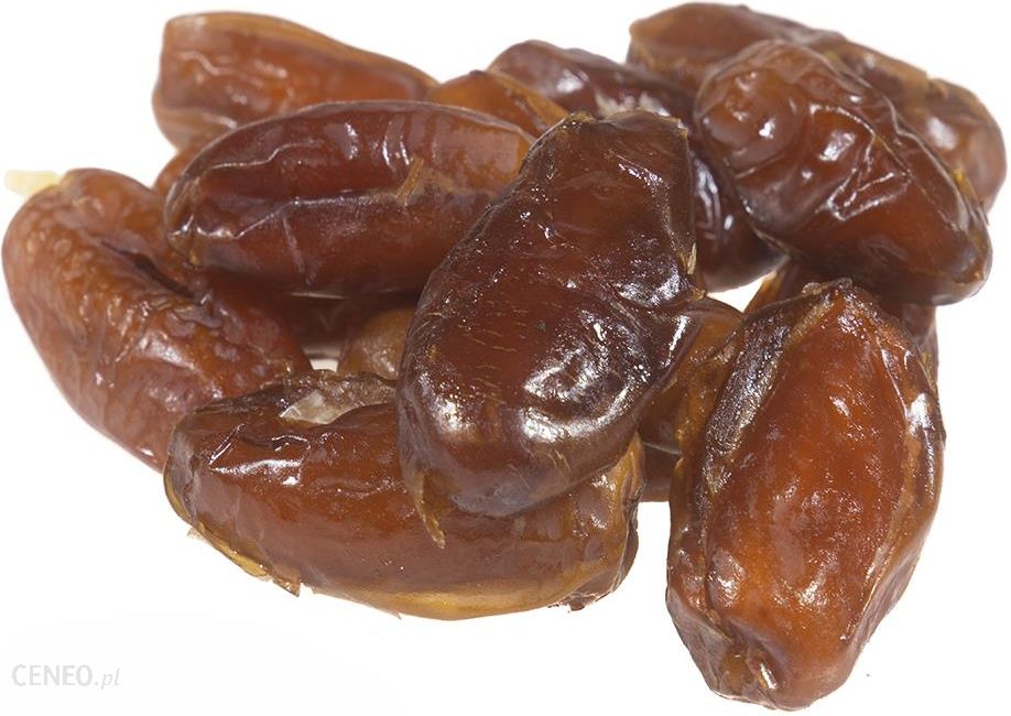 Skład:Daktyle bez pestek suszone* 100% *certyfikowany składnik ekologiczny Opis:Suszone daktyle to cudowna alternatywa dla dbających o linię. Wspaniale zastępują słodycze, są bardzo słodkie i sycące. Oczywiście oprócz walorów smakowych posiadają także zdrowotne: zawierają dużo błonnika, witaminy A, B1, B2 i PP, potas, żelazo i magnez. Są bardzo skuteczne w przypadku zaparć, obniżają też cholesterol. Wartość odżywcza w 100g wartość energetyczna: 1244kJ/294kcal tłuszcz: 0,0g w tym kwasy tłuszczowe nasycone: 0,0g węglowodany: 67g w tym cukry: 63g białko: 2,4g sól: 0,0g Produkt może zawierać alergeny: gluten, orzechy, soję, sezam, seler.